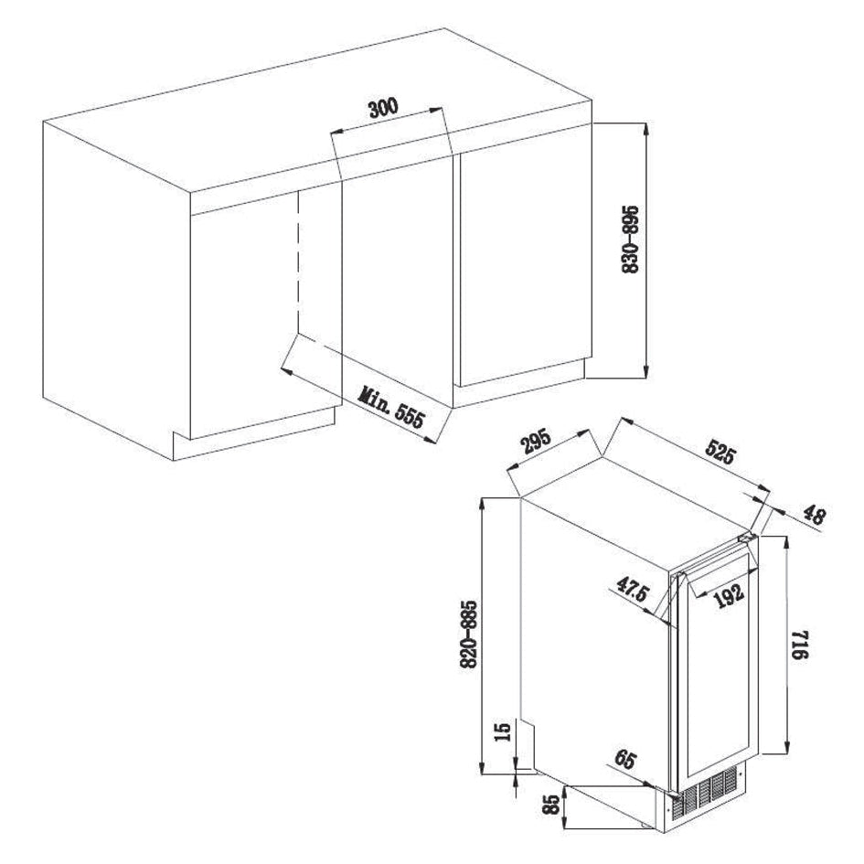 Schwarzer Einbaukühlschrank 22 Flaschen Single Temperature