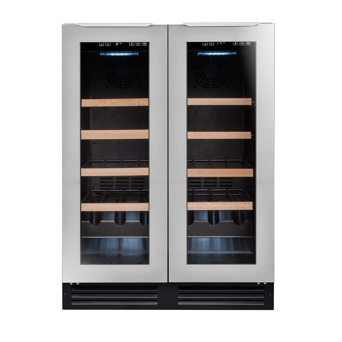 This wine cellar fridge, in a certain way, represents excellence as regards small-sized cellars: two separate rooms completely independent of each other allow you to store your wines by setting the appropriate temperatures, accommodating, as desired, even 38 bottles at the same temperature. This model, thanks to the double independent refrigeration system, allows you to store red, white and sparkling wines both in the right cabin and in the left cabin.