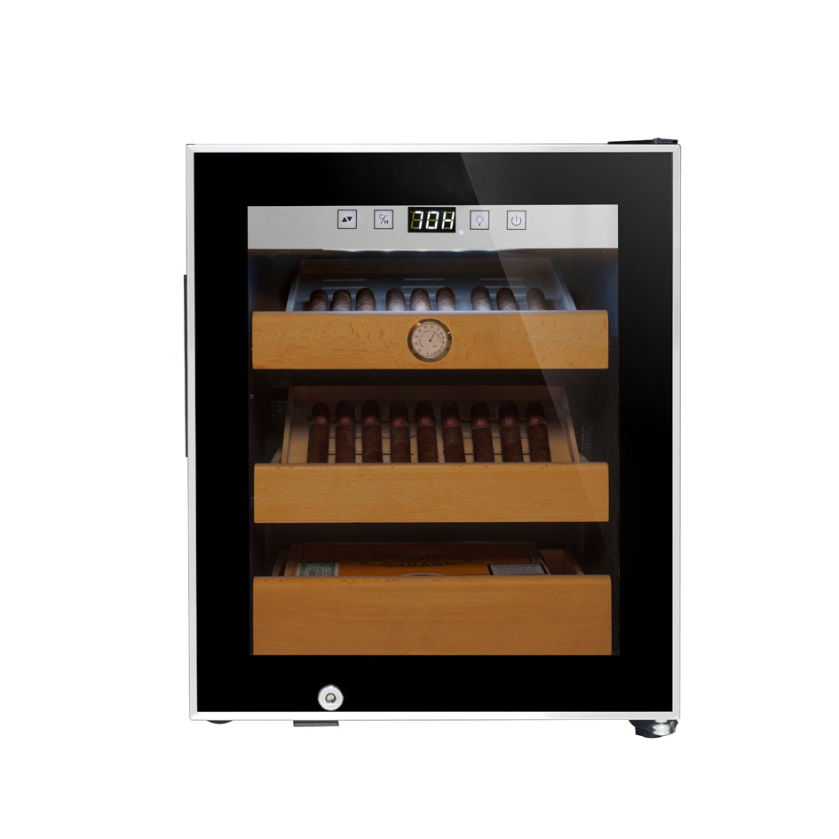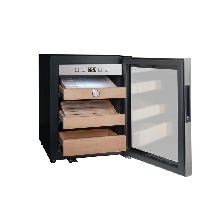 <p><span style="color:rgb(33,43,54);">Capacity: 200/250 Cigars*</span><br><span style="color:rgb(33,43,54) ;">Free Installation</span><br><span style="color:rgb(33,43,54);">Color: Black and stainless steel frame</span><br><span style=" color:rgb(33,43,54);">Cooling system: compressor</span><br><span style="color:rgb(33,43,54);">Refrigeration: Ventilated</span> <br><span style="color:rgb(33,43,54);">Temperature adjustable from 10° to 22°C</span><br><span style="color:rgb(33,43, 54);">Electronic regulation</span><br><span style="color:rgb(33,43,54);">Digital thermometer with white display</span><br><span style="color :rgb(33,43,54);">White LED lighting</span><br><span style="color:rgb(33,43,54);">Glass door with lock, anti-UV treated glass </span></p><p>&nbsp;</p><p><span style="color:rgb(33,43,54);"><i>*The total capacity depends on the size of the cigars and</i></span><br><span style="color:rgb(33,43,54);"><i>by the fact that they are stored in their original packaging</i></span> </p>