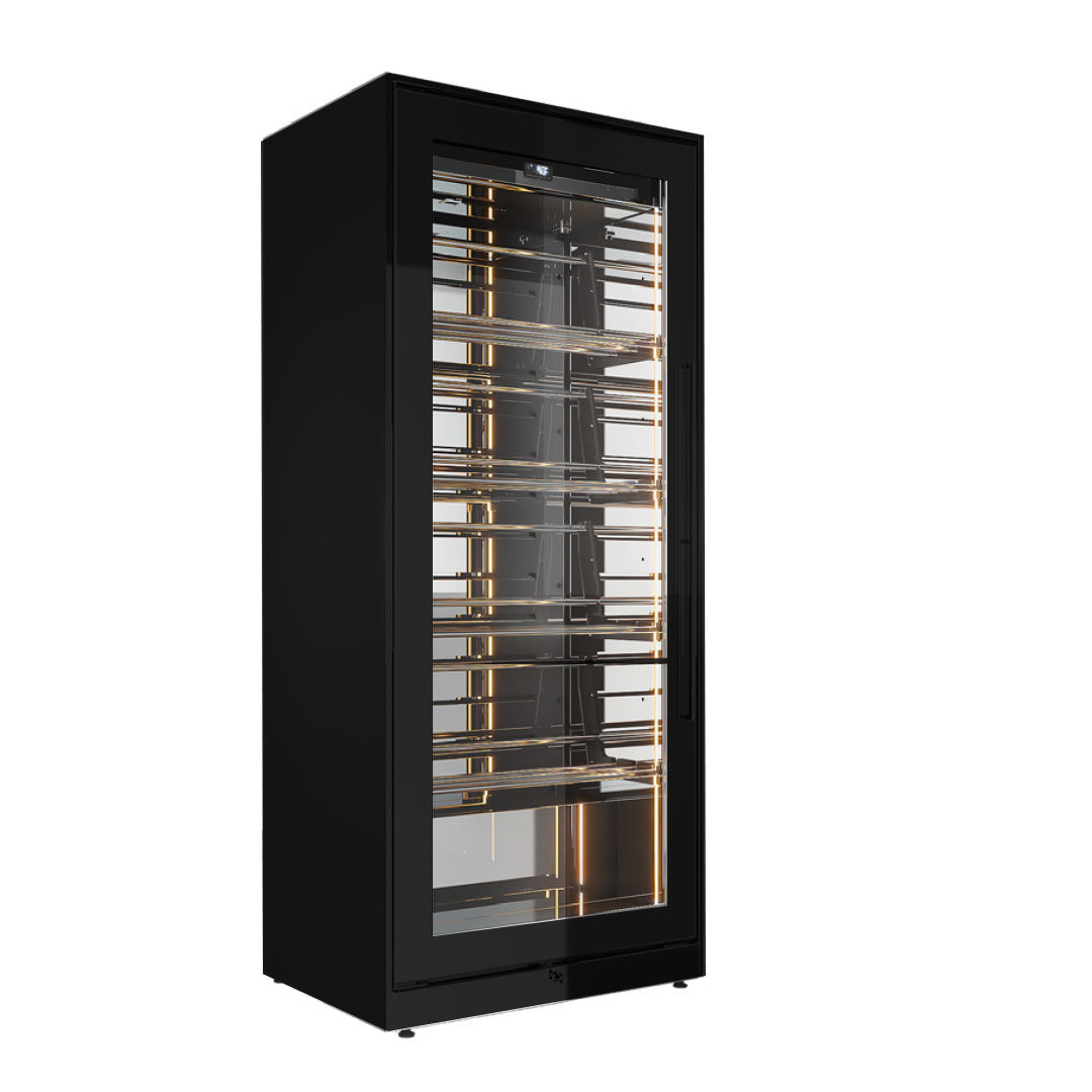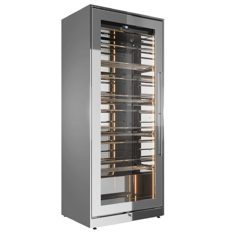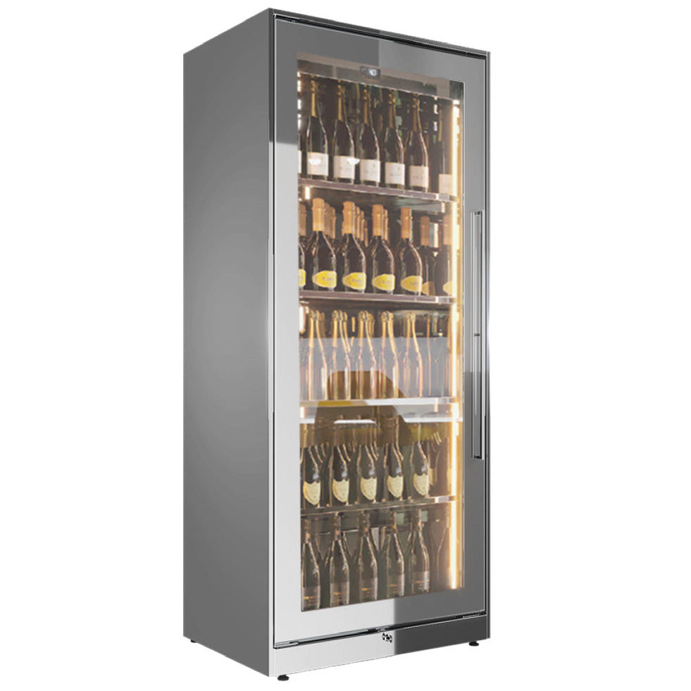 The internal LED lighting along the side panels and the stainless steel interior create a unique depth effect and captivating light plays that enhance the visual impact of the bottles, offering a bright and welcoming space.<br><br>