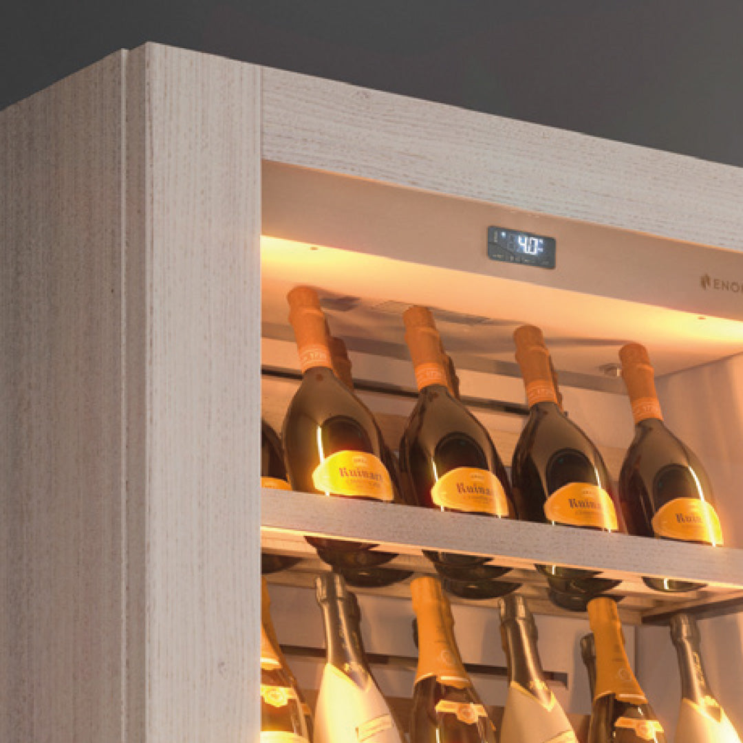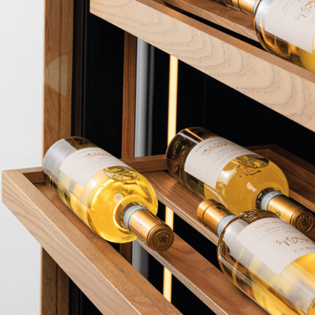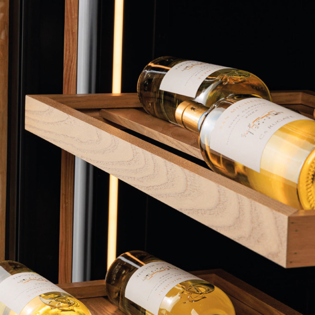 The winemaking tradition embraces the classic and essential lines of the Infinity Wood showcase.