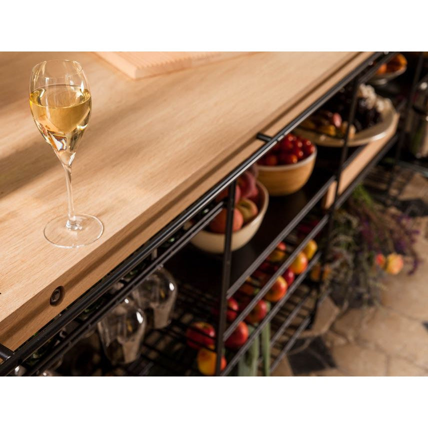<p>Solid wood <strong>table</strong> composed of:<br/> - Upper floor<br/> - Downstairs<br/> - Sliding cup holder<br/> - Optional wheels</p><p> <strong>Three types of wood</strong>:<span style="text-decoration:underline;">- Olive Ash - Oak - Iroko - American Walnut</span></p>