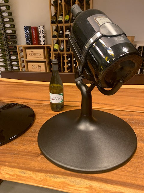 Pourer for large format bottles, up to 18 liters . The bottle holder rotates 360 degrees on itself. The mescita can be carried out without wasting product, thanks to the balanced tilting system of the support. In the bottle holder, a concave space can accommodate bagged chemical ice elements. In this way the bottle can remain cooled during mescita. The product has an ergonomic design and is made of cast aluminum to improve maneuverability and stability during use.