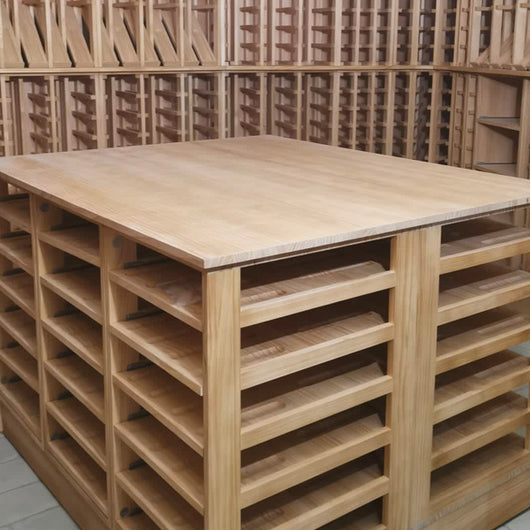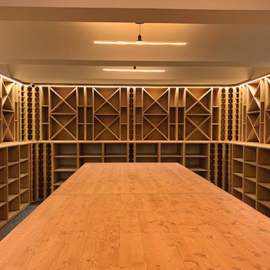 Cave climatisée avec mobilier en bois massif.