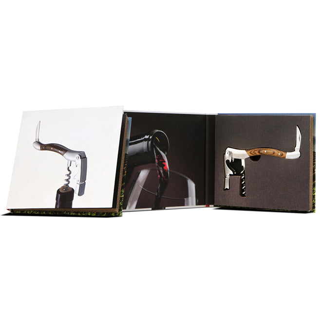 Tire-bouchon en acier inoxydable avec spirale professionnelle et double levier pour bouchons longs.