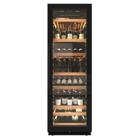 Ingebouwde zwarte kelderkoelkast met één temperatuur voor 150 flessen