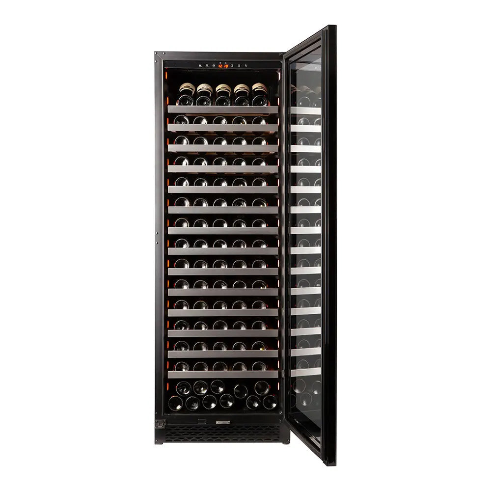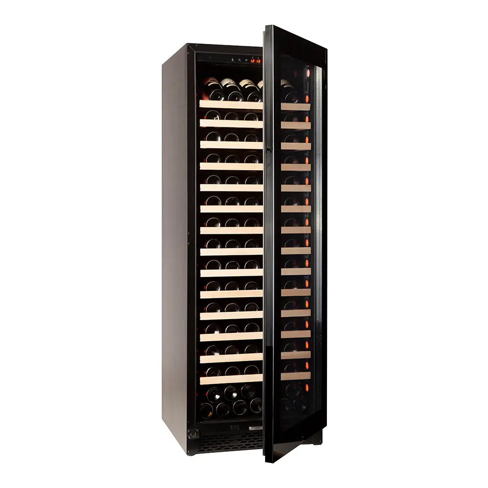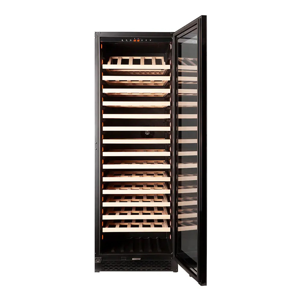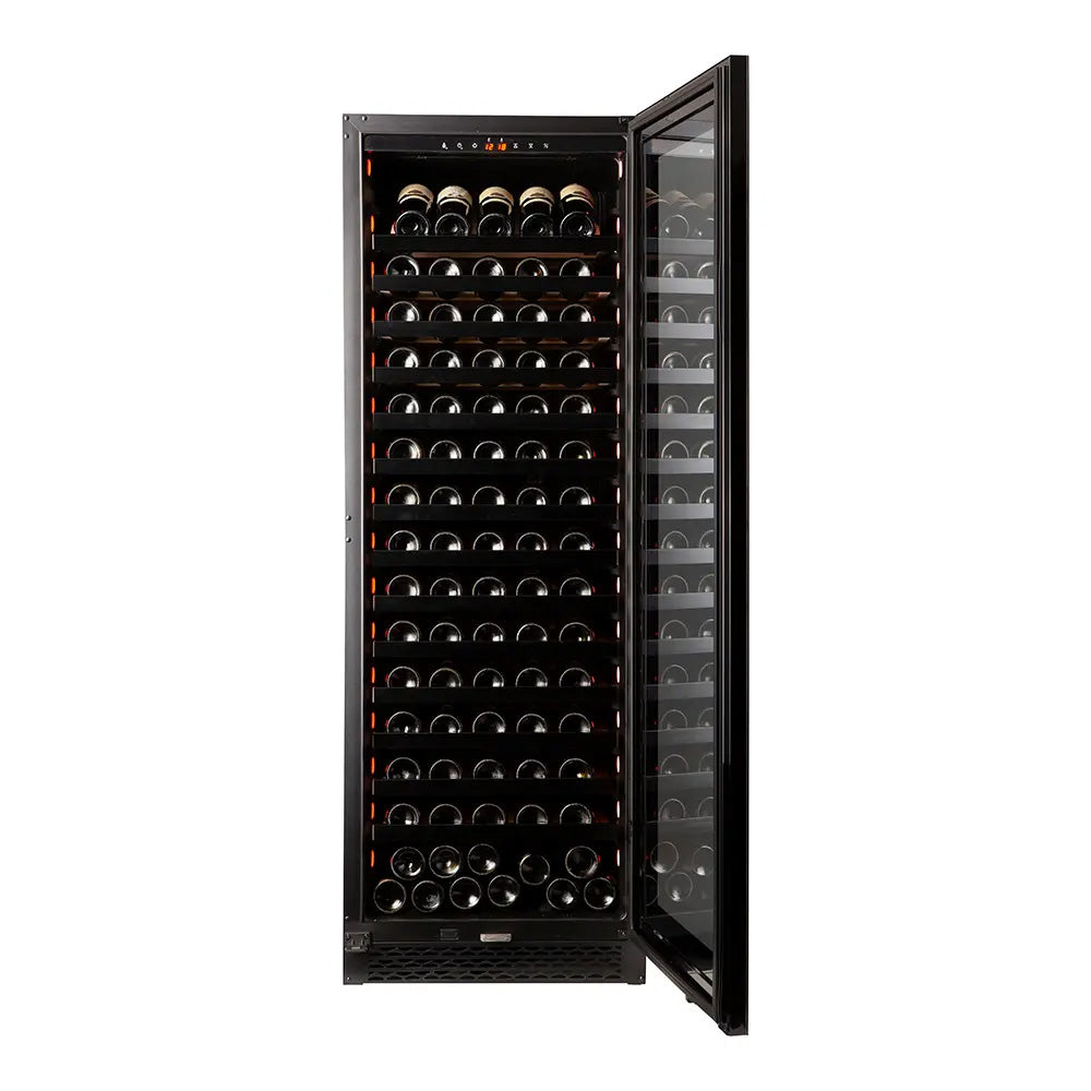 Capaciteit: 159 flessen*<br data-mce-fragment="1">Kleur: Zwart<br data-mce-fragment="1">Koelsysteem: compressor<br data-mce-fragment="1">Koeling: geventileerd<br data-mce-fragment="1">Instelbare temperatuur: van +5° tot +20°C<br data-mce-fragment="1">Elektronische regeling<br data-mce-fragment="1">Thermometer met digitaal display<br data-mce-fragment="1">Witte, oranje en blauwe LED-verlichting met schakelaar<br data-mce-fragment="1">Anti-UV-deur met dubbele beglazing