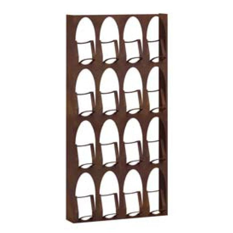 Wijnflessenrek van plaatstaal. Dikte 2 mm, laser gesneden.