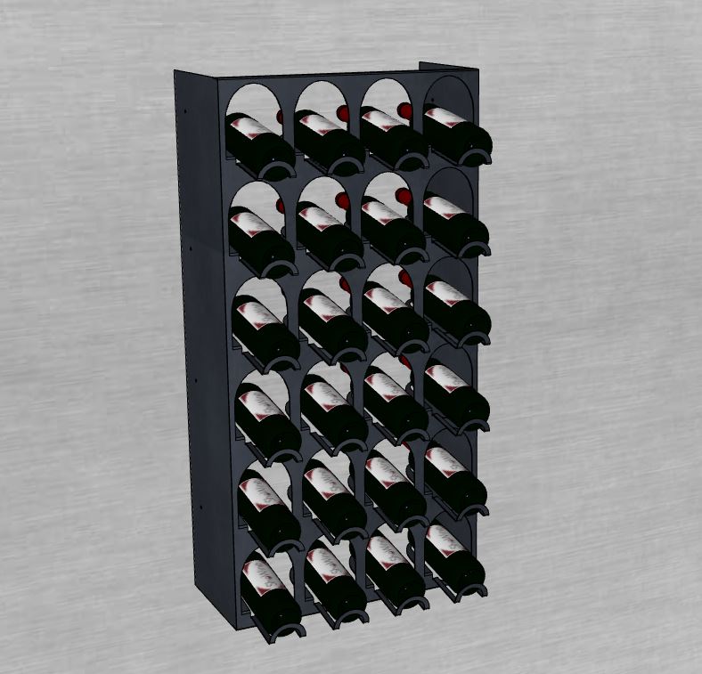 Wijnflessenrek van plaatstaal. Dikte 2 mm, laser gesneden.