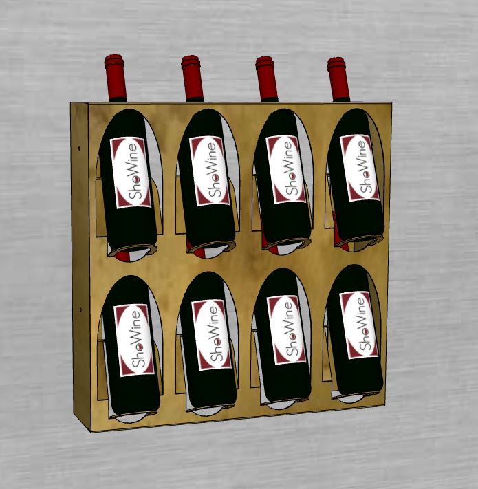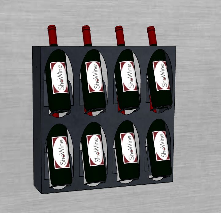 Wijnflessenrek van plaatstaal. Dikte 2 mm, laser gesneden.