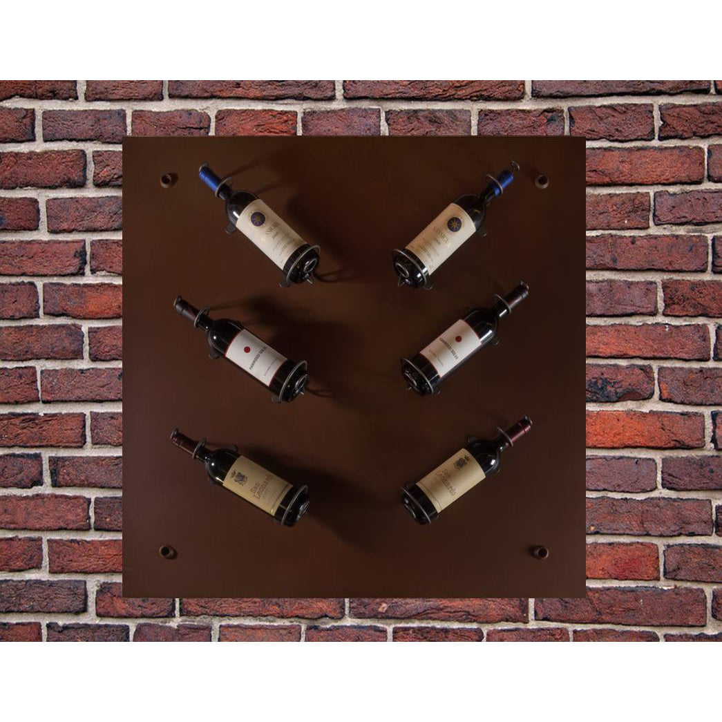 Brünierte Eisenplatte mit 6 einstellbaren magnetischen Flaschenhaltern für 0,75-Liter-Flaschen.