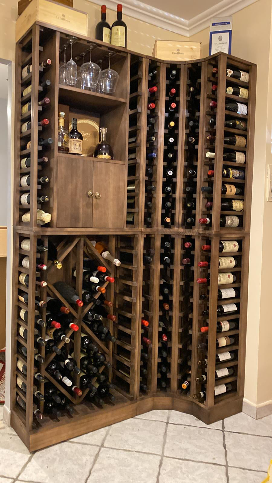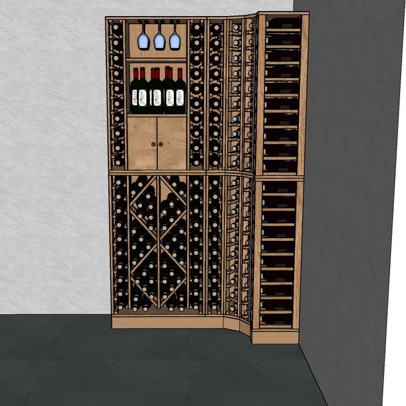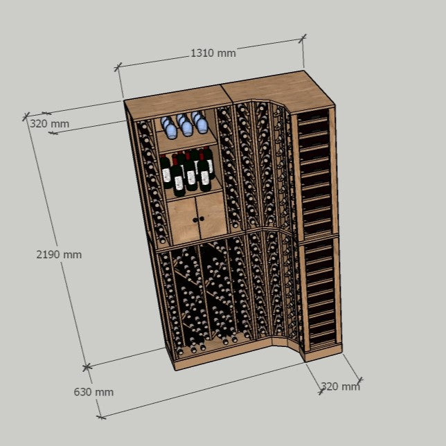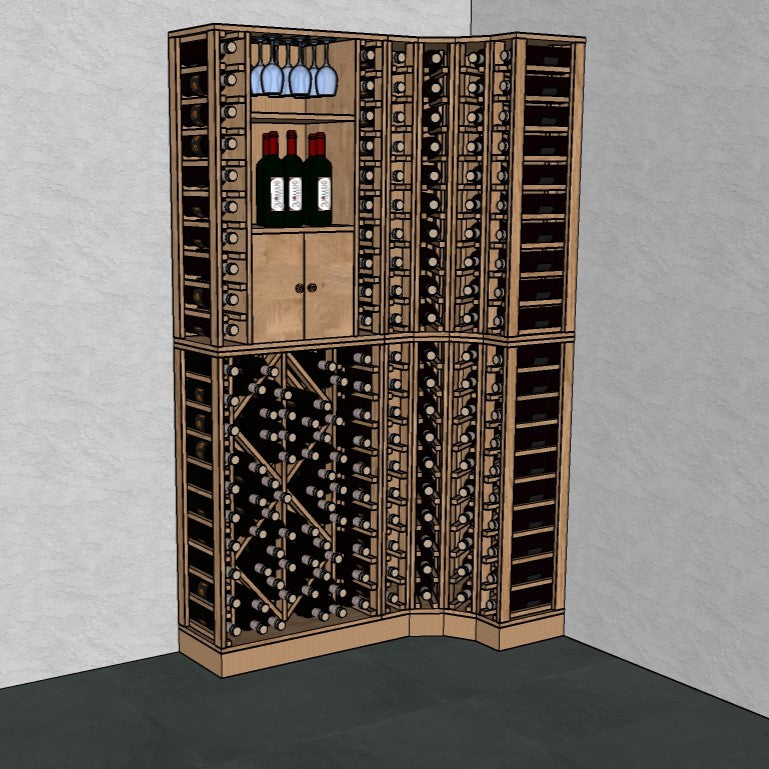 Houten hoekrek - 168 flessen