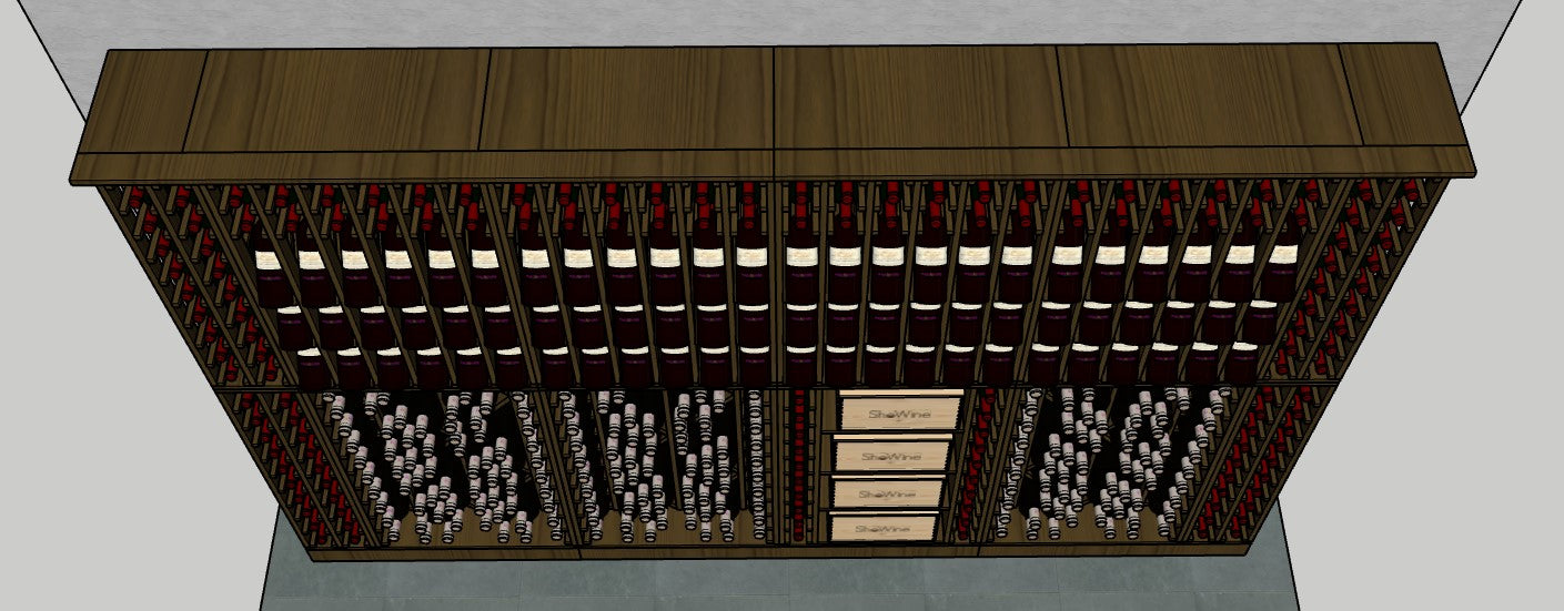 <p><strong>Parete Portabottiglie Modulare in Pino Massello - H.219 cm</strong><br>Capienza: 472 bottiglie<br>Elemento Centrale con 4 ripiani scorrevoli per cassa<br>Con luce led integrata<br><br><strong>Colori:</strong> Legno <i>Naturale, su richiesta: Verniciato Scuro - Verniciato&nbsp;Nero - Verniciato&nbsp;Bianco</i>&nbsp;<br><a href="https://cdn.shopify.com/s/files/1/0561/8535/6486/files/woodcolori.pdf"><span style="color:#942f2f;"><i>Tabella Colori</i></span></a><br><a href="https://cdn.shopify.com/s/files/1/0561/8535/6486/files/woodambienti.pdf"><span style="color:#a43232;">Galleria Ambientazioni</span></a></p>
