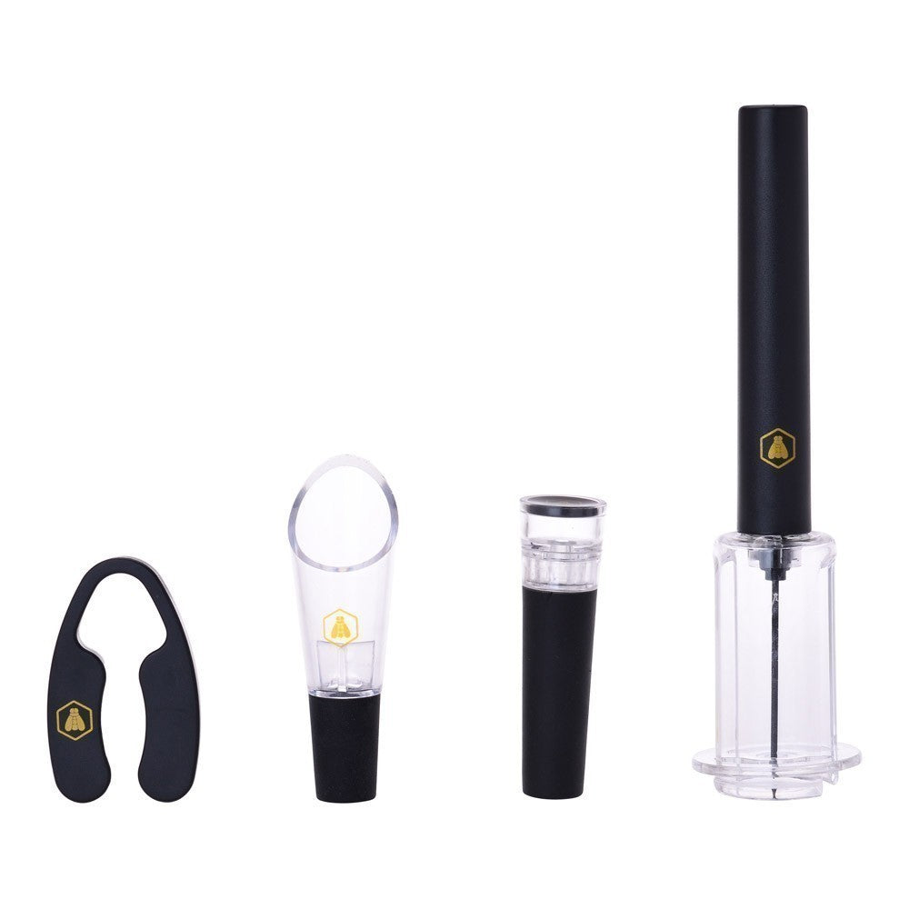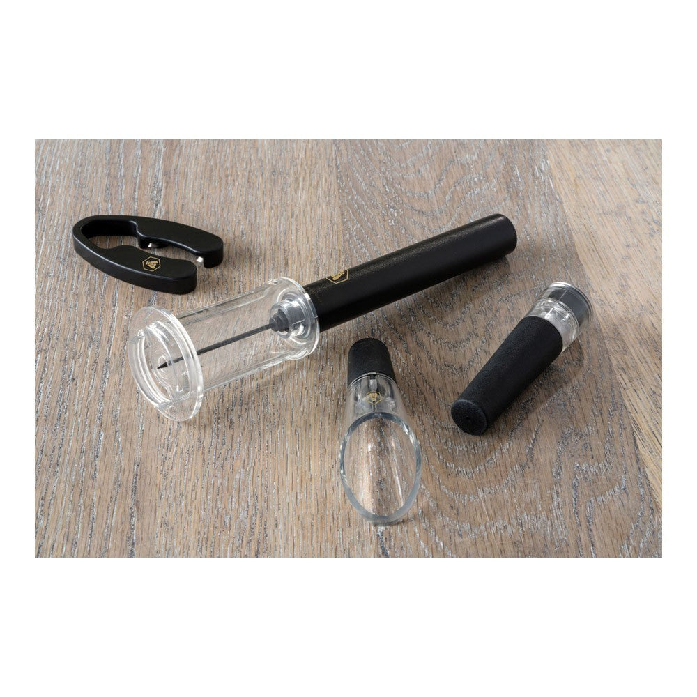 <p>Korkociąg ciśnieniowy w pudełku prezentowym<br> z:<br> - Korek do nalewania wina<br> - Magnetyczny obcinak do folii<br> - Korek próżniowy</p>