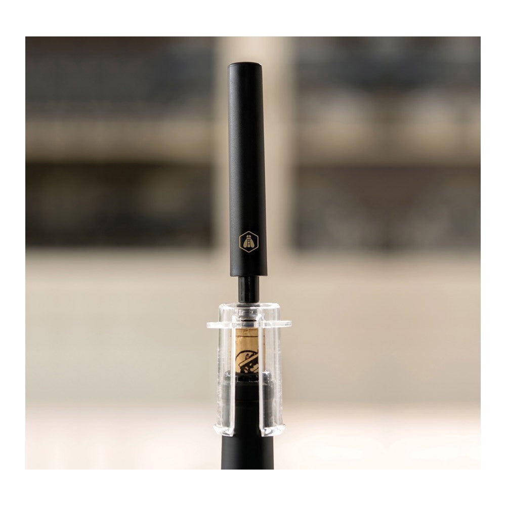 Korkociąg elektryczny, który dostosowuje się do wszystkich rodzajów butelek. Wyposażony w akumulator. Ładuje się łatwo, gdy baza jest podłączona do źródła prądu.