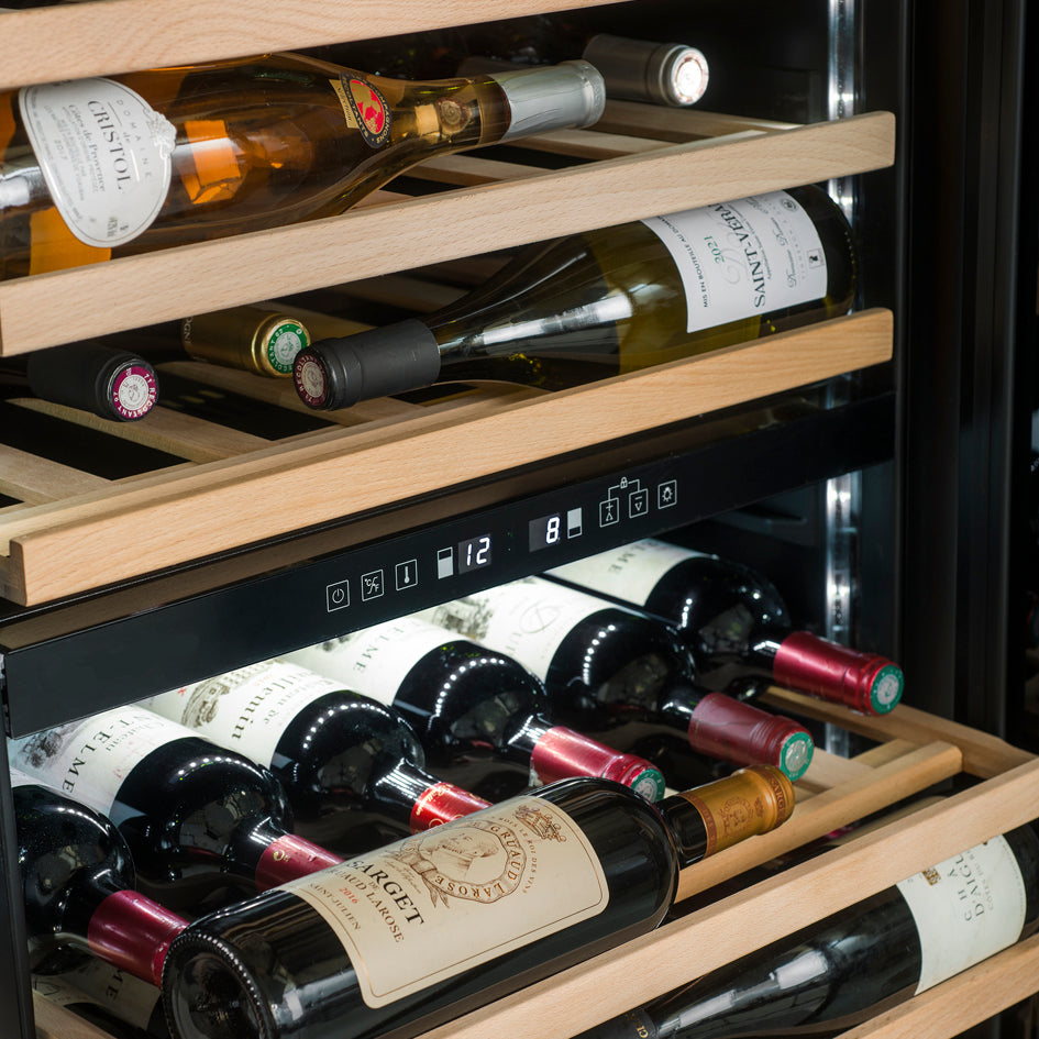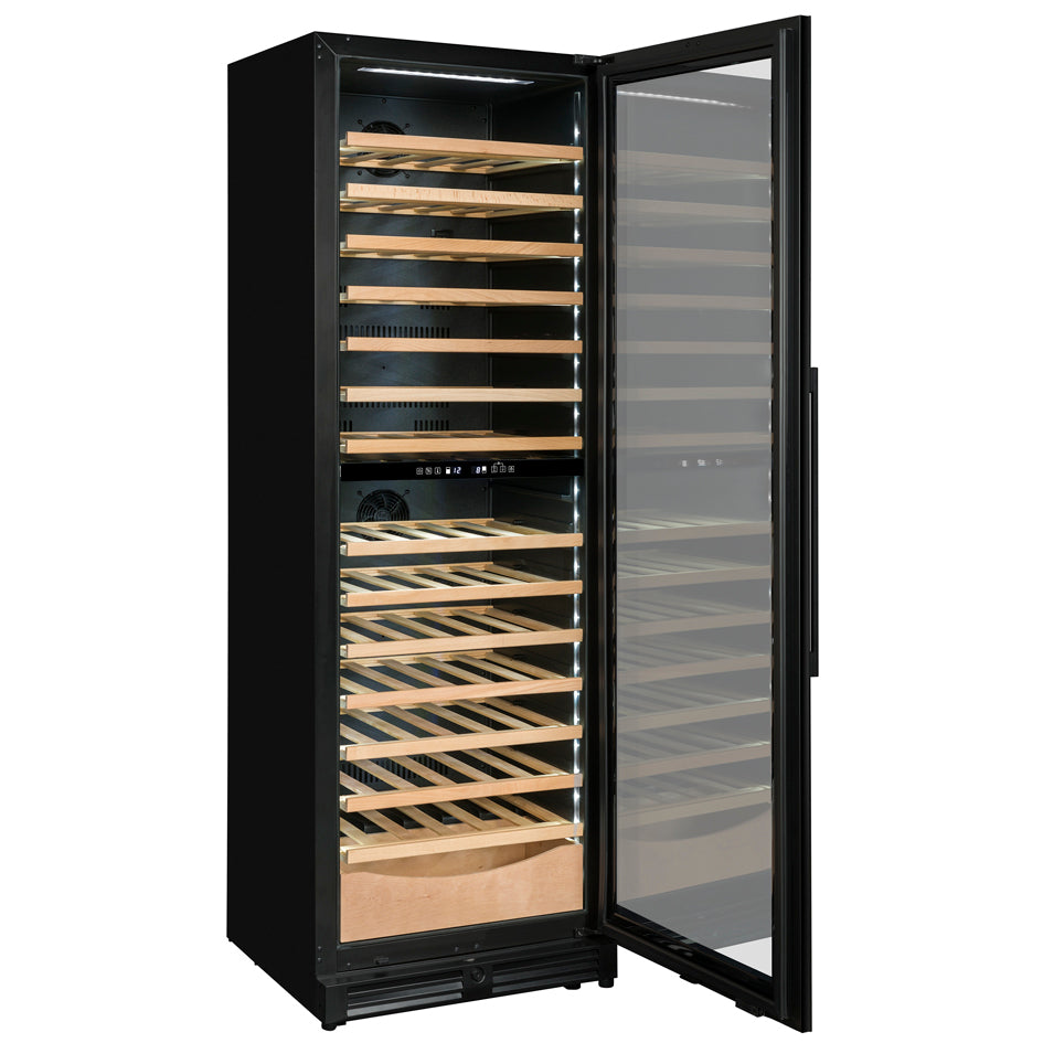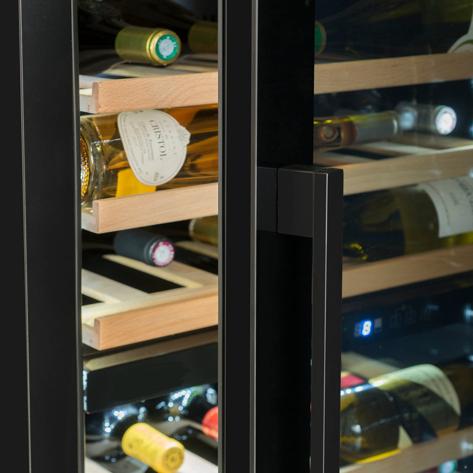 <p><span style="color:rgb(31,33,36);">Pojemność: 109 butelek*</span><br> <span style="color:rgb(31,33,36);">Wolnostojące i do zabudowy</span><br> <span style="color:rgb(31,33,36);">Projekt: Korpus w kolorze czarnym i drzwiczki z czarnego szkła</span><br> <span style="color:rgb(31,33,36);">Układ chłodzenia: kompresor</span><br> <span style="color:rgb(31,33,36);">Chłodzenie: Wentylowane</span><br> <span style="color:rgb(31,33,36);">Regulowana temperatura:</span><br> <span style="color:rgb(31,33,36);">- strefa górna: 5°-12°C</span> <i>(55 butelek)</i><br> <span style="color:rgb(31,33,36);">- strefa dolna: 12°-20°C</span> <i>(54 butelki)</i><br> <span style="color:rgb(31,33,36);">Regulacja elektroniczna</span><br> <span style="color:rgb(31,33,36);">Termometr elektroniczny z białym wyświetlaczem</span><br> <span style="color:rgb(31,33,36);">Oświetlenie LED w kolorze białym z włącznikiem</span><br> <span style="color:rgb(31,33,36);">Dwustronne drzwi szklane z zamkiem,</span><br> <span style="color:rgb(31,33,36);">Szare szkło hartowane poddane potrójnej obróbce UV</span><br> <span style="color:rgb(31,33,36);">Kompatybilny z</span> aplikacją <a href="https://cdn.shopify.com/s/files/1/0561/8535/6486/files/VINOTAG.pdf?v=1663343823"><span style="color:rgb(150,0,0);"><strong>VINOTAG®</strong></span></a><br> <i>(zobacz charakterystykę, we współpracy z VIVINO)</i></p>