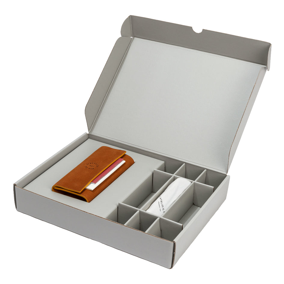 Wykonane z octanu skorupy szylkretu i srebrnego mosiądzu, dostarczane w miękkim, ręcznie wykonanym skórzanym etui.