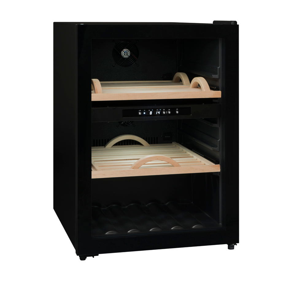 <p><span style="color:rgb(33,43,54);">Libera installazione</span><br><span style="color:rgb(33,43,54);">Colore: Nero</span><br><span style="color:rgb(33,43,54);">Sistema di raffreddamento: compressore</span><br><span style="color:rgb(33,43,54);">Refrigerazione: Ventilata</span><br><span style="color:rgb(33,43,54);">Temperatura regolabile da:</span><br><span style="color:rgb(33,43,54);">- zona superiore da 5° a 15°C</span><br><span style="color:rgb(33,43,54);">- zona inferiore da 15° a 20°C</span><br><span style="color:rgb(33,43,54);">Regolazione elettronica</span><br><span style="color:rgb(33,43,54);">Termometro digitale con display bianco</span><br><span style="color:rgb(33,43,54);">Illuminazione LED bianca</span><br><span style="color:rgb(33,43,54);">Porta a doppio vetro temperato trattato anti UV</span></p>