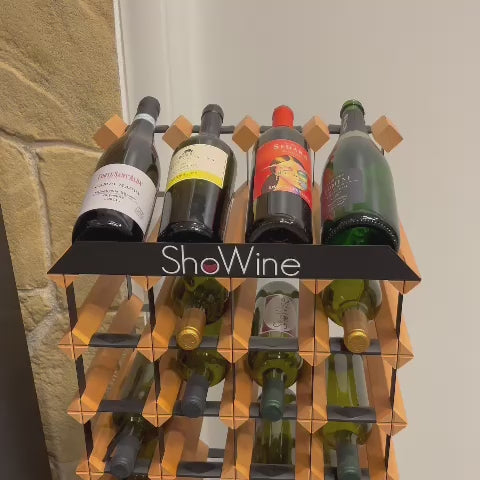 Espositore in Legno e Acciaio che offre una capacità di 24 bottiglie.