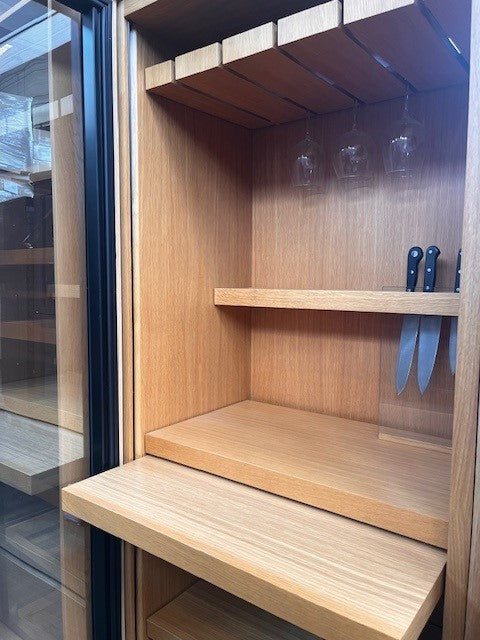 Numero ripiani: 1 Mensola Porta Calici1 Mensola Porta Coltelli 1 Ripiano Scorrevole 2 Ripiani Fissi1 Cassetto Estraibile