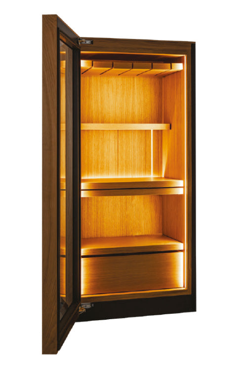 <p>Wood Cabinet è un elemento non refrigerato finemente allestito con ripiani e vassoi in legno massello.<br>Partendo dalle esigenze del contenuto, sono stati disegnati e creati tutti gli elementi indispensabili per poter mantenere al meglio i prodotti di altissima qualità.<br>Ogni accessorio della cantina è stato ideato e progettato specificatamente per il contenuto che andrà a conservare.<br><br>Allestimento Base: <br>- 1 Mensola Porta Calici <br>- 1 Mensola Porta Coltelli<br>- 1 Ripiano Scorrevole <br>- 2 Ripiani Fissi<br>- 1 Cassettone Estraibile <br><br><span style="text-decoration: underline;">MADE IN ITALY 100%</span><br><br>Personalizzazione interna disponibile su richiesta.<br><br></p>