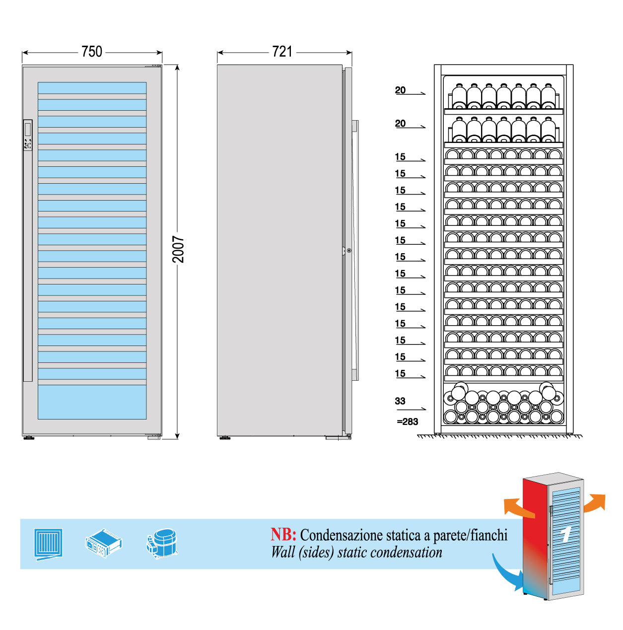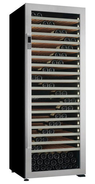 <p>Singola temperatura regolabile: da +5° a +20°C<br>Libera Installazione<br>Refrigerazione ventilata<br>Porta in Acciaio Inox con vetro basso emissivo<br>Pannello comandi con display LCD sulla maniglia porta<br>LED laterali a luce calda<br>18 Ripiani in Legno con guide telescopiche<br><span style="background-color:rgb(255,255,255);color:rgb(0,170,255);">Tecnologia&nbsp;INVERTER</span><span style="background-color:rgb(255,255,255);color:rgb(68,68,68);"> </span><i>(riduzione consumi)</i><br><span style="color:rgb(33,43,54);">Classe energetica G </span><i>(vecchia classe A)</i><br>Capacità: 303 bottiglie da 0,75 lt.</p><figure class="image"><img src="{{media url=" alt=""></figure>