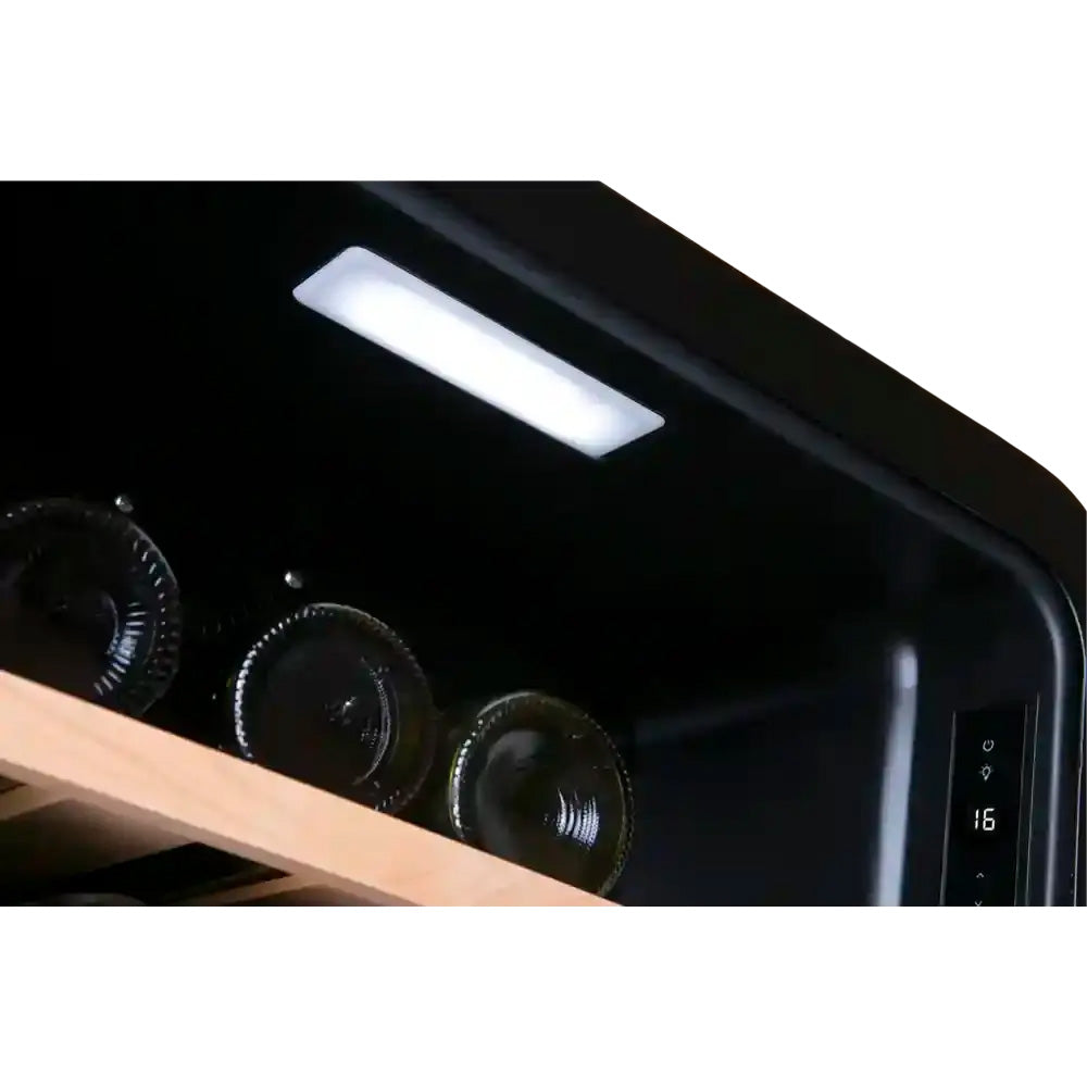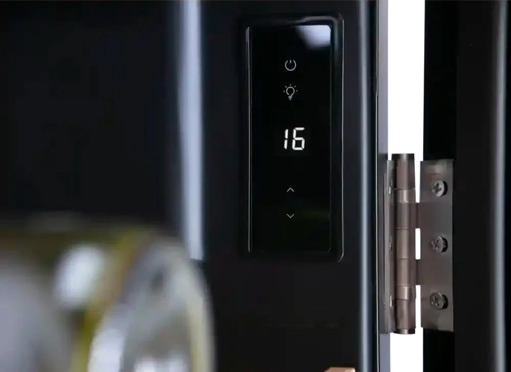 <p>Capacità: 76 Bottiglie*<br>Colore: Nero<br>Sistema di raffreddamento: Compressore<br>Refrigerazione: Ventilata<br>Temperatura regolabile: da+4° a +22°C<br>Regolazione elettronica<br>Termometro con display digitale<br>Illuminazione a LED bianchi con interruttore&nbsp;<br>Anta in vetrocamera anti-UV</p>