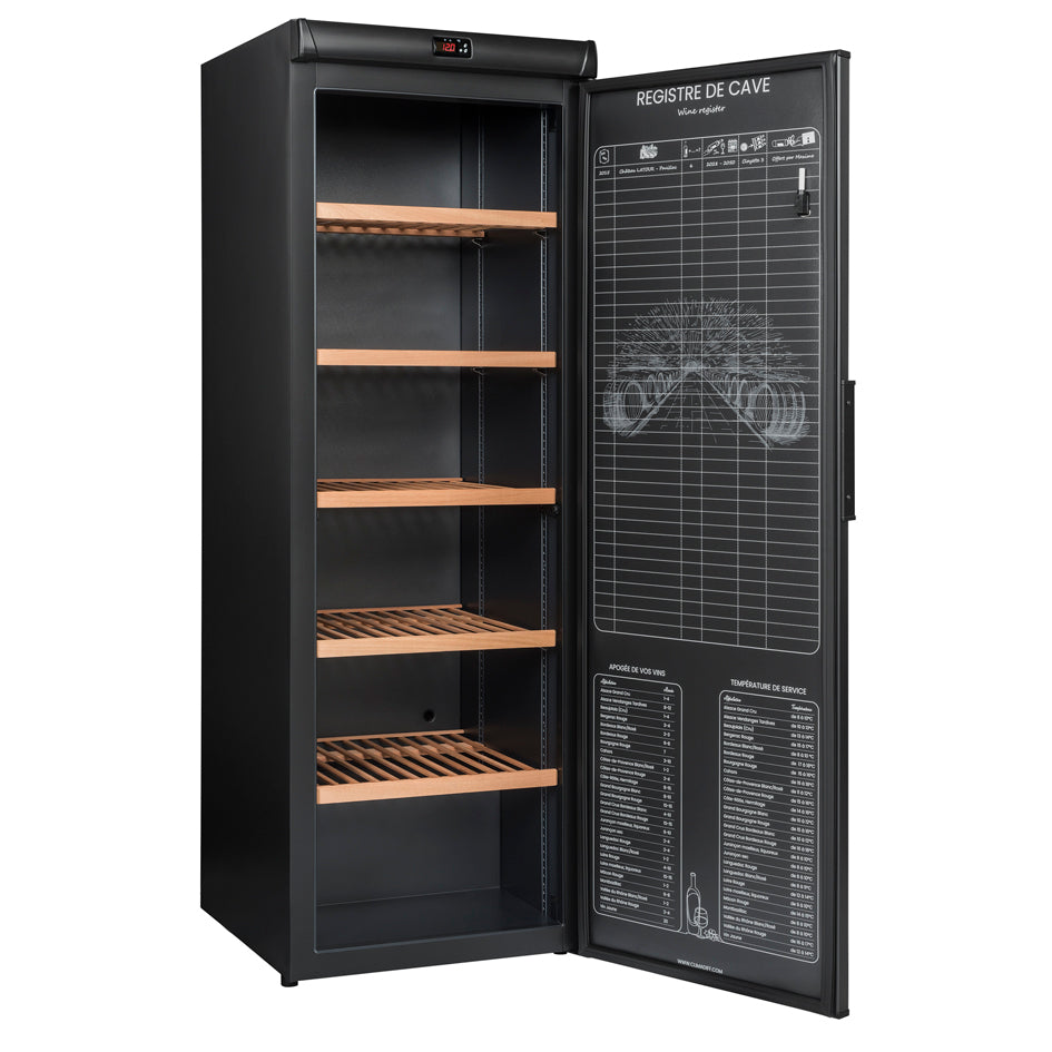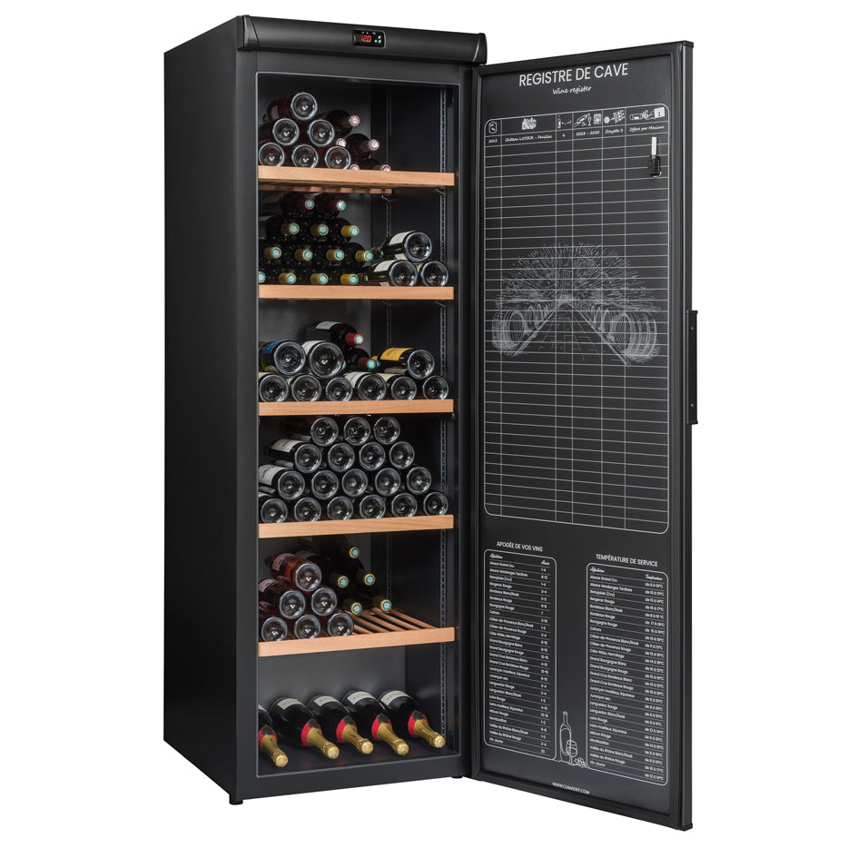 <p><span style="color:rgb(33,43,54);">Capacità: 264 bottiglie*</span><br><span style="color:rgb(33,43,54);">Libera installazione</span><br><span style="color:rgb(33,43,54);">Colore: Black</span><br><span style="color:rgb(33,43,54);">Raffreddamento: Compressore</span><br><span style="color:rgb(33,43,54);">Temperatura regolabile da 5°a 18°C</span><br><span style="color:rgb(33,43,54);">Regolazione elettronica</span><br><span style="color:rgb(33,43,54);">Termometro elettronico con display digitale</span><br><span style="color:rgb(33,43,54);">Porta piena con lavagna interna</span><br><span style="color:rgb(33,43,54);">Compatibile con l'applicazione&nbsp;</span><a href="https://cdn.shopify.com/s/files/1/0561/8535/6486/files/VINOTAG.pdf?v=1663343823"><span style="color:rgb(150,0,0);"><strong>VINOTAG®</strong></span></a><br><span style="color:rgb(33,43,54);"><i>(vedi caratteristiche, in collaborazione con VIVINO)</i></span></p>