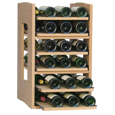I due moduli superiori sono dotati di ripiani scorrevoli, i quali hanno al loro interno un apposito incavo di alloggio per ogni singola bottiglia, garantendo la massima stabilità ed una facile gestione e ricerca delle bottiglie.I moduli Cavicase sono realizzati in legno compresso, impermeabile all'acqua e all'umidità, e sono di facile montaggio, (serve solo il cacciavite per il fissaggio delle guide dei ripiani scorrevoli)