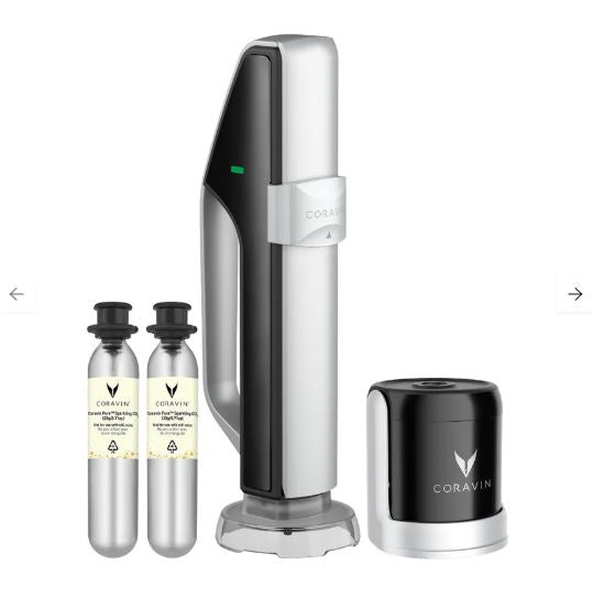- 2 Capsule Sparkling Coravin Pure:  preservano il sapore e l'effervescenza del tuo vino. Ogni capsula permette di conservare fino a 7 bottiglie standard.
