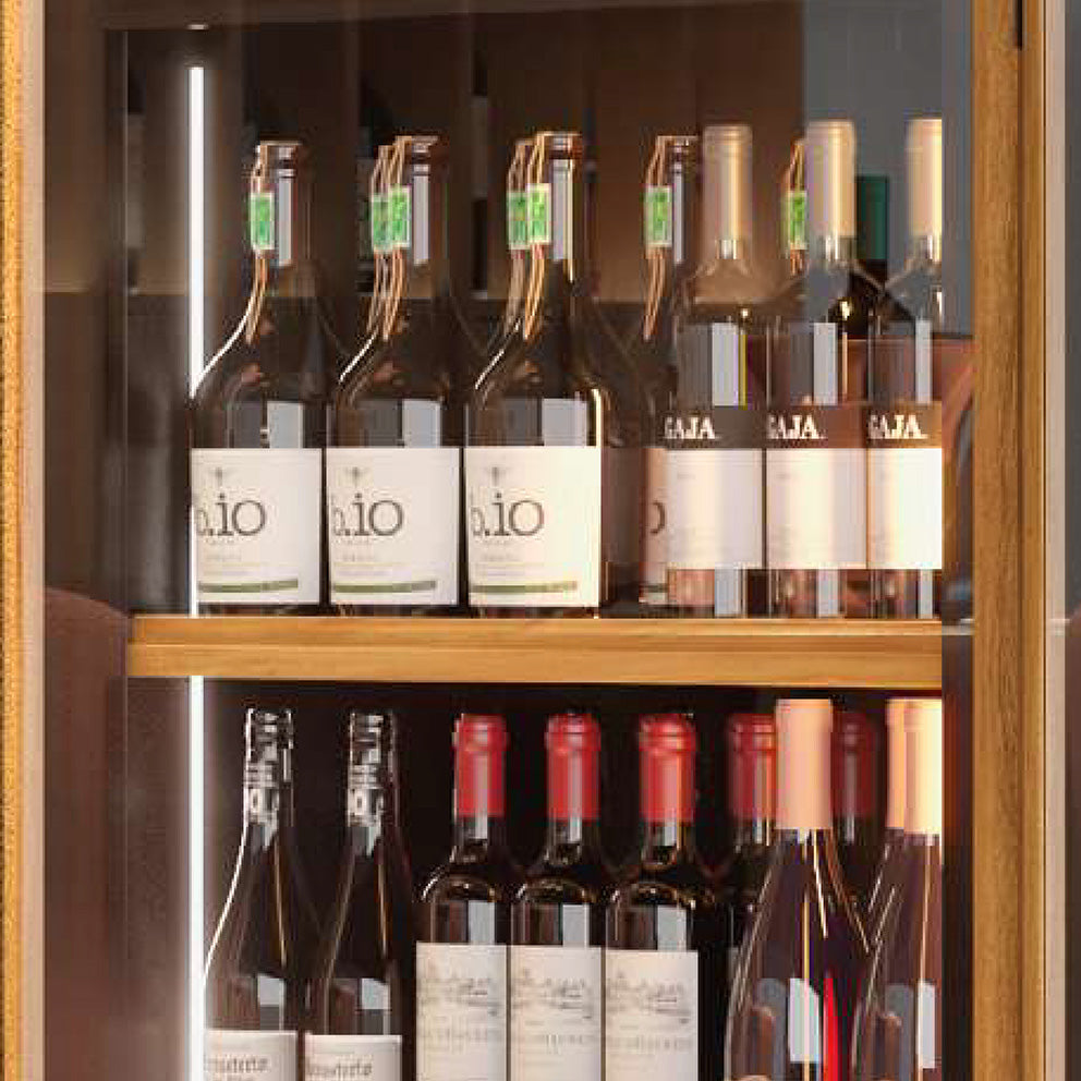La refrigerazione statica permette nella stessa unità di impostare quattro differenti temperature, da 4°C a 18°C, consentendo in tal modo di conservare ed esporre correttamente tipologie diverse di vini