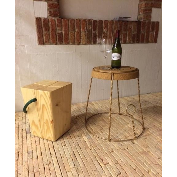 <p><strong>Sgabello</strong> in <strong>abete naturale o tinto</strong> con maniglia in corda colorata <strong>blu navy, verde inglese, rosso, canapa, bianco o nero</strong>.</p>
