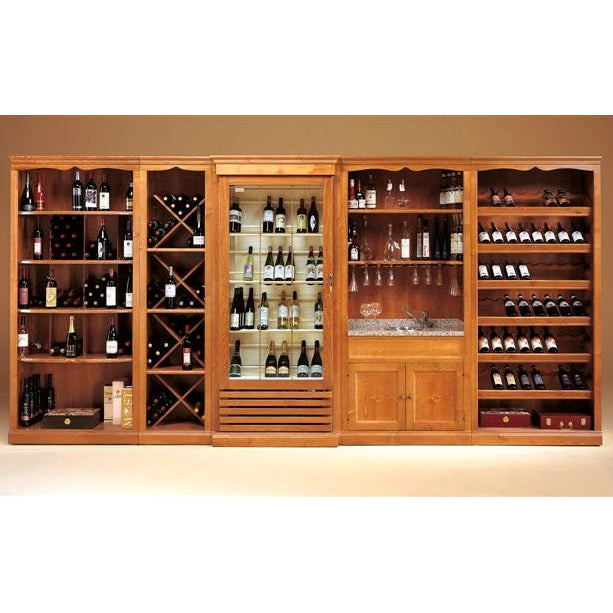 Parete composta da 5 elementi realizzati in legno di Abete massello (tra cui una Cantina frigo ed un modulo lavello),