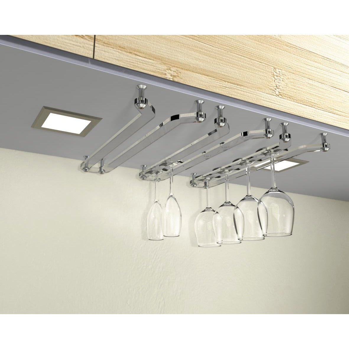 <p>Portacalici sottopensile universale,<br />adatto a bicchieri con stelo di diamentro fino a 25 mm e spessore del piede fino a 35 mm.<br />Struttura in Plexiglass trasparente con supporti in acciaio inox.<br />Facilissima installazione.<br />Capacit&agrave; standard: 4 calici.</p>